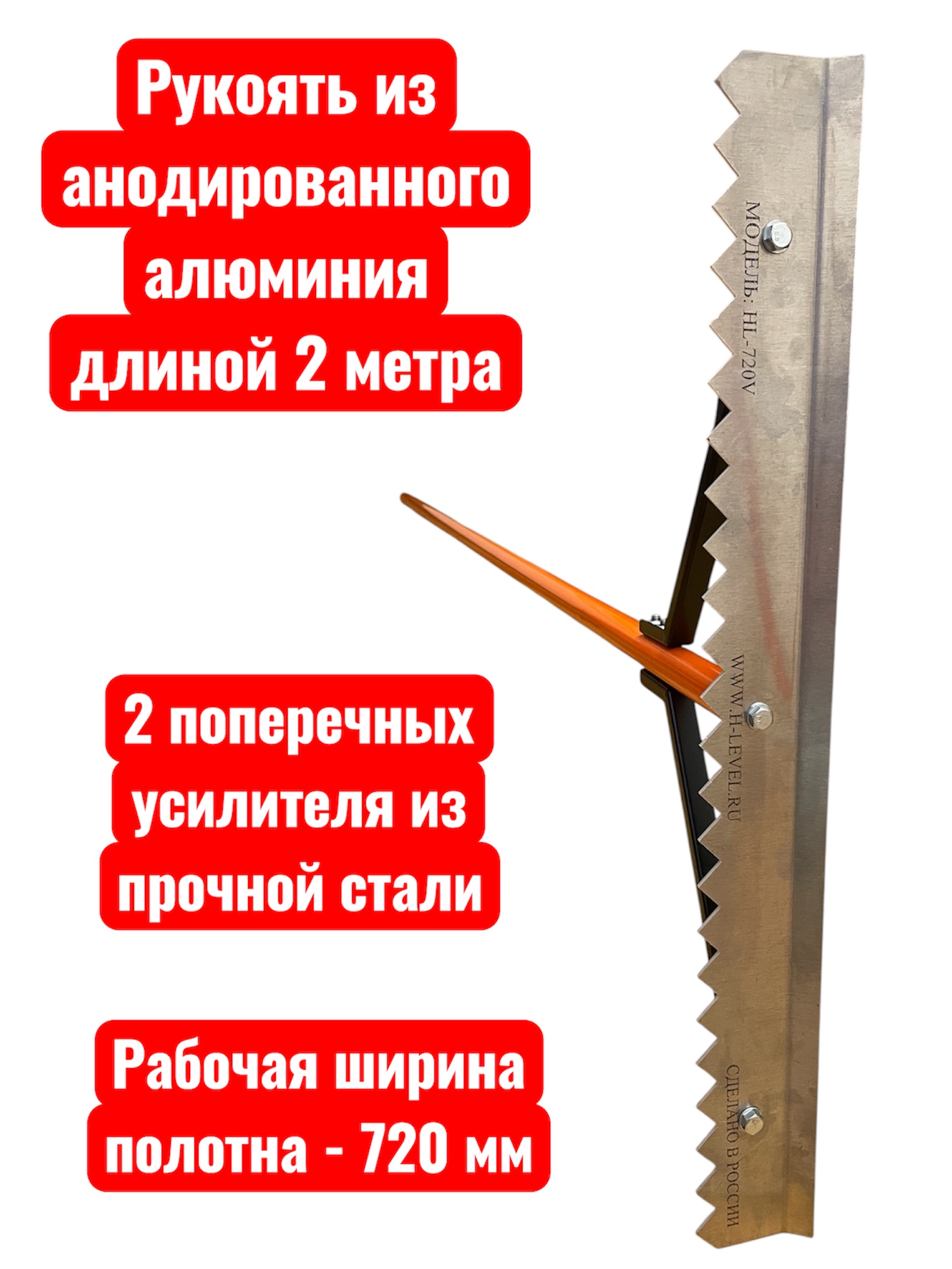 Рукоять гладилки сделана из облегченного прочного анодированного алюминия. Рабочее полотно изготовлено из алюминиево-магниевого сплава, что обеспечивает большой рабочий ресурс, прочность и устойчивость к коррозии.